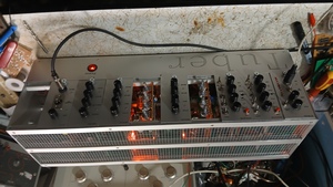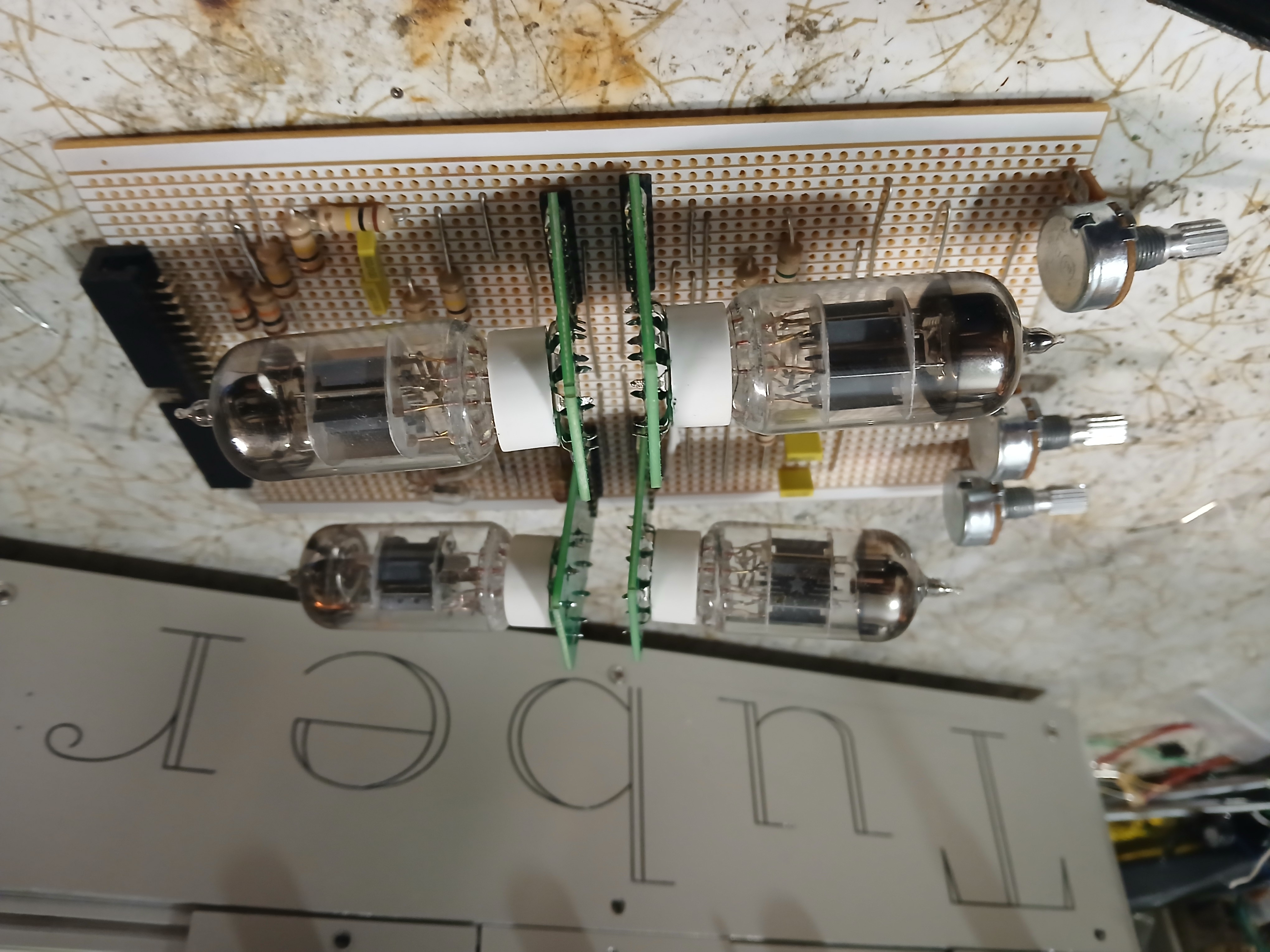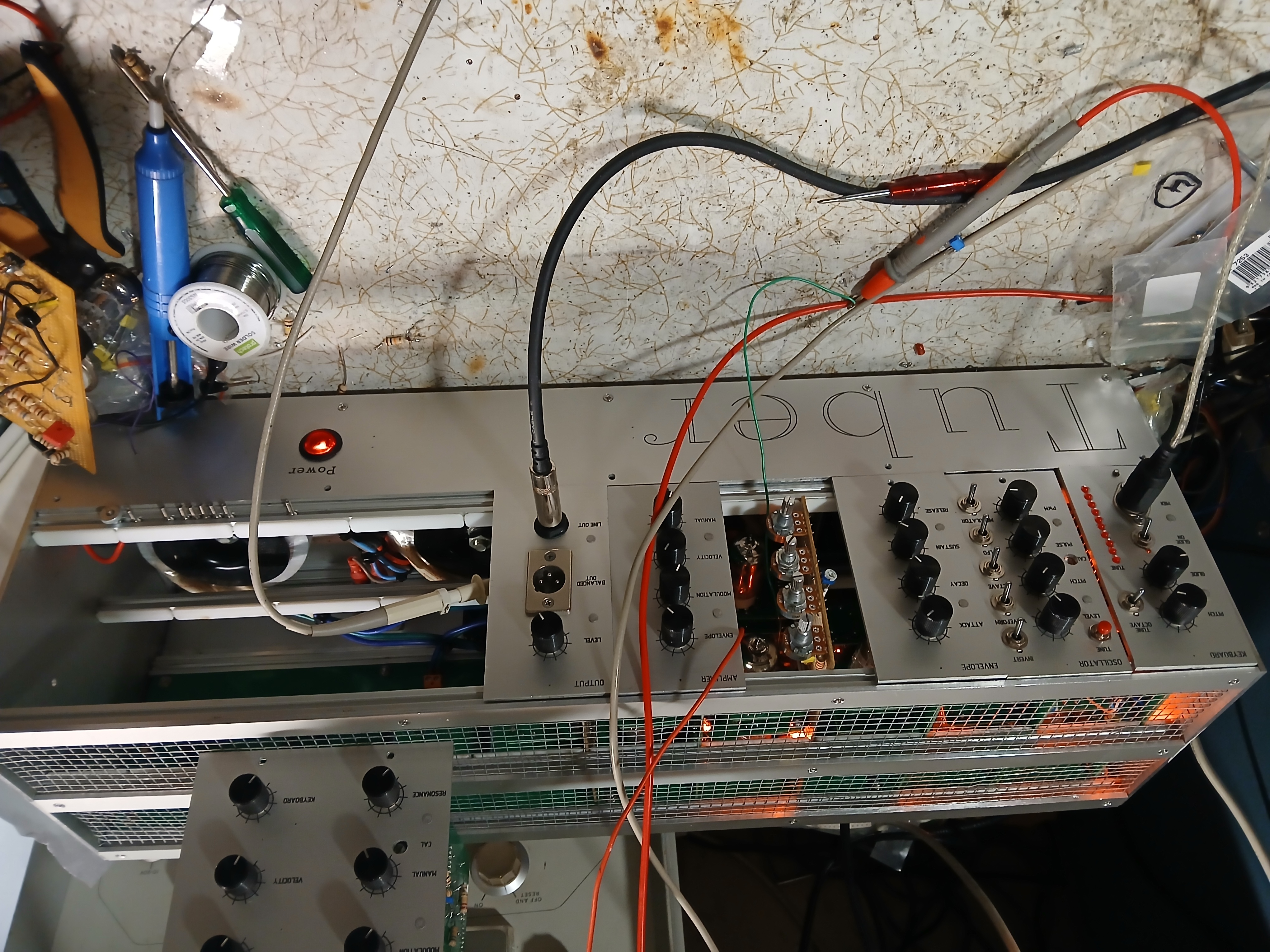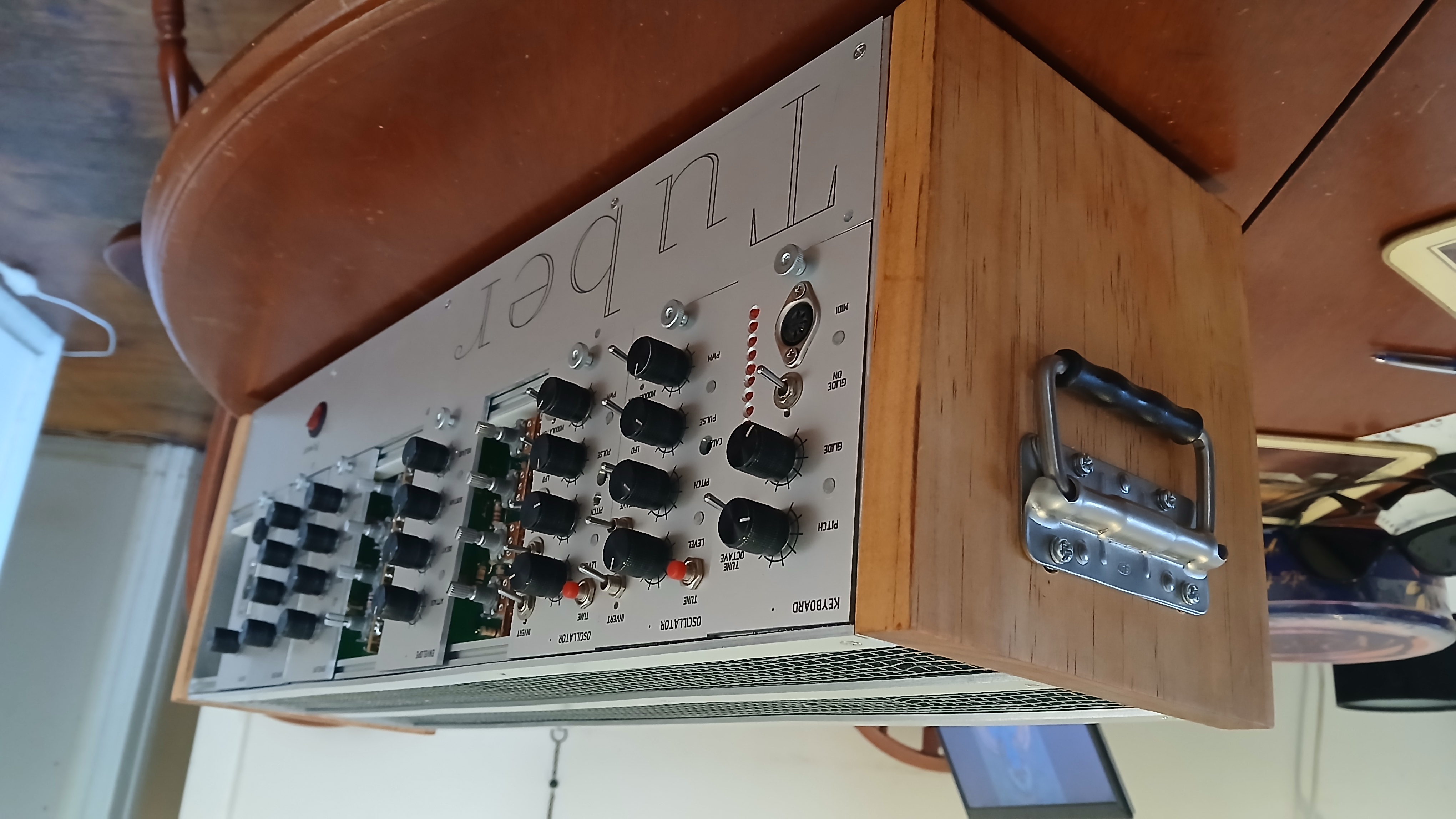 The Tuber Synthesizer is a valve, subtractive, monophonic, semi-modular synthesizer. It uses a Phantastron based voltage controlled oscillator and a four valve Sallen-Key voltage controlled filter.